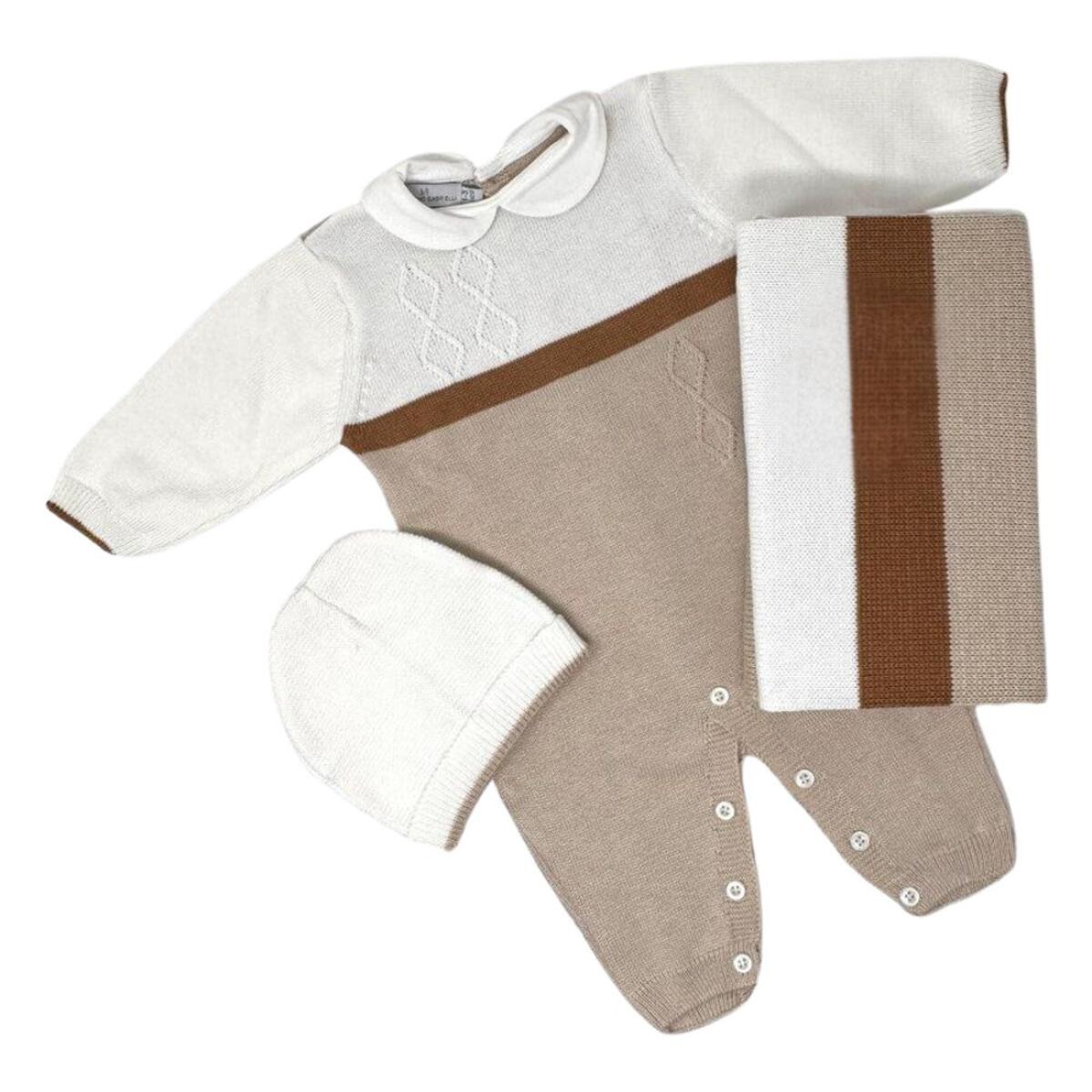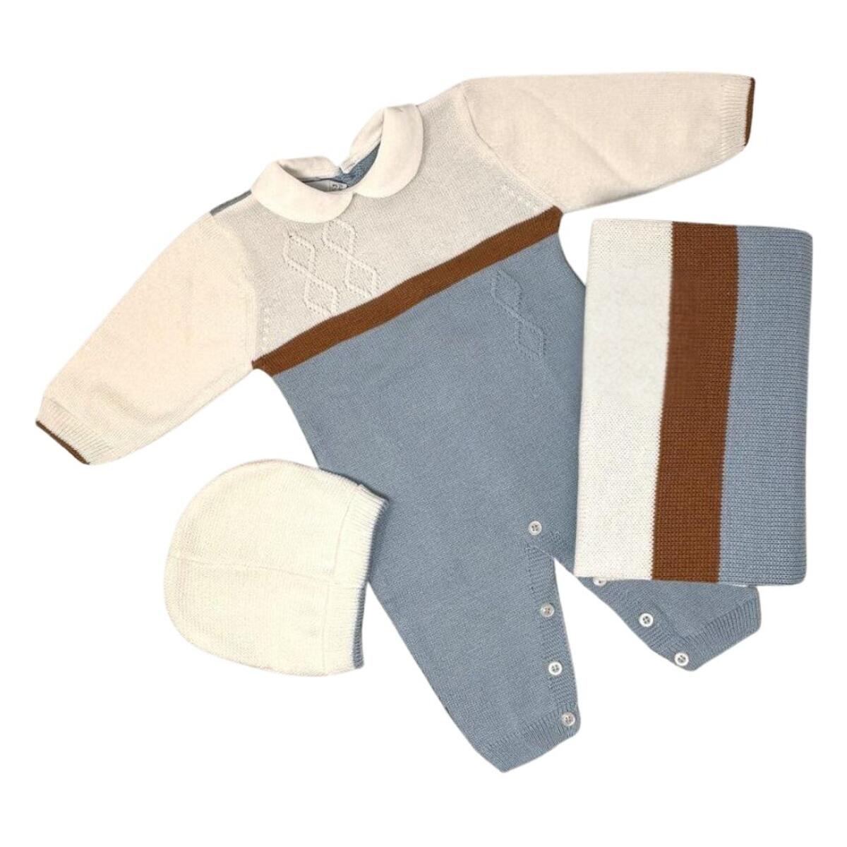 Set 3 pezzi da neonato composto da tutina, copertina e cappello.