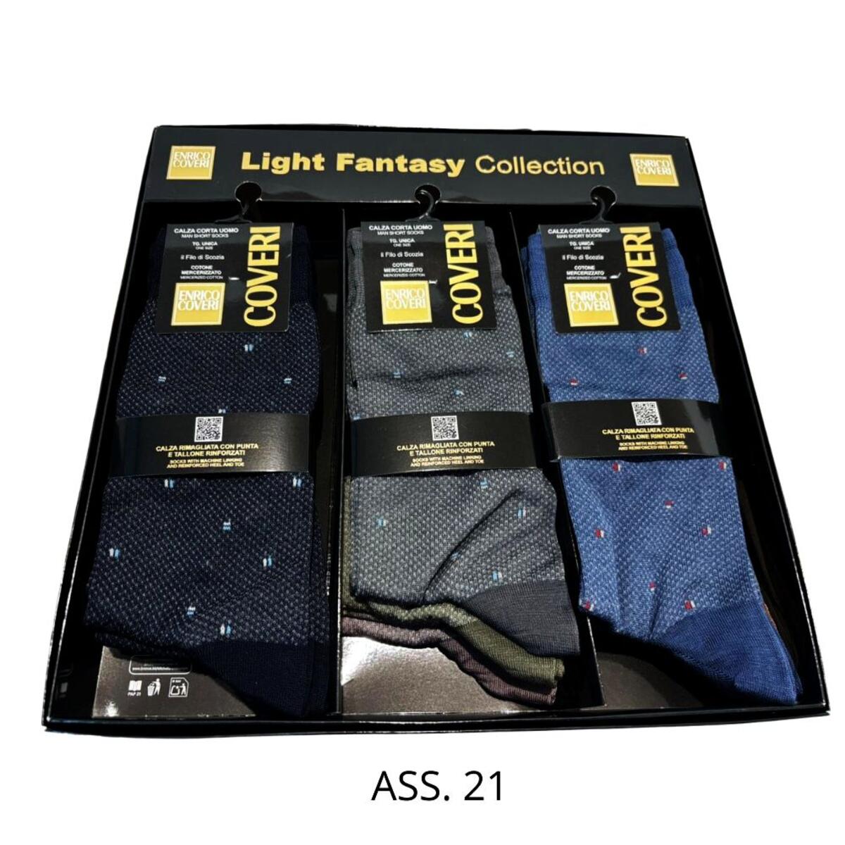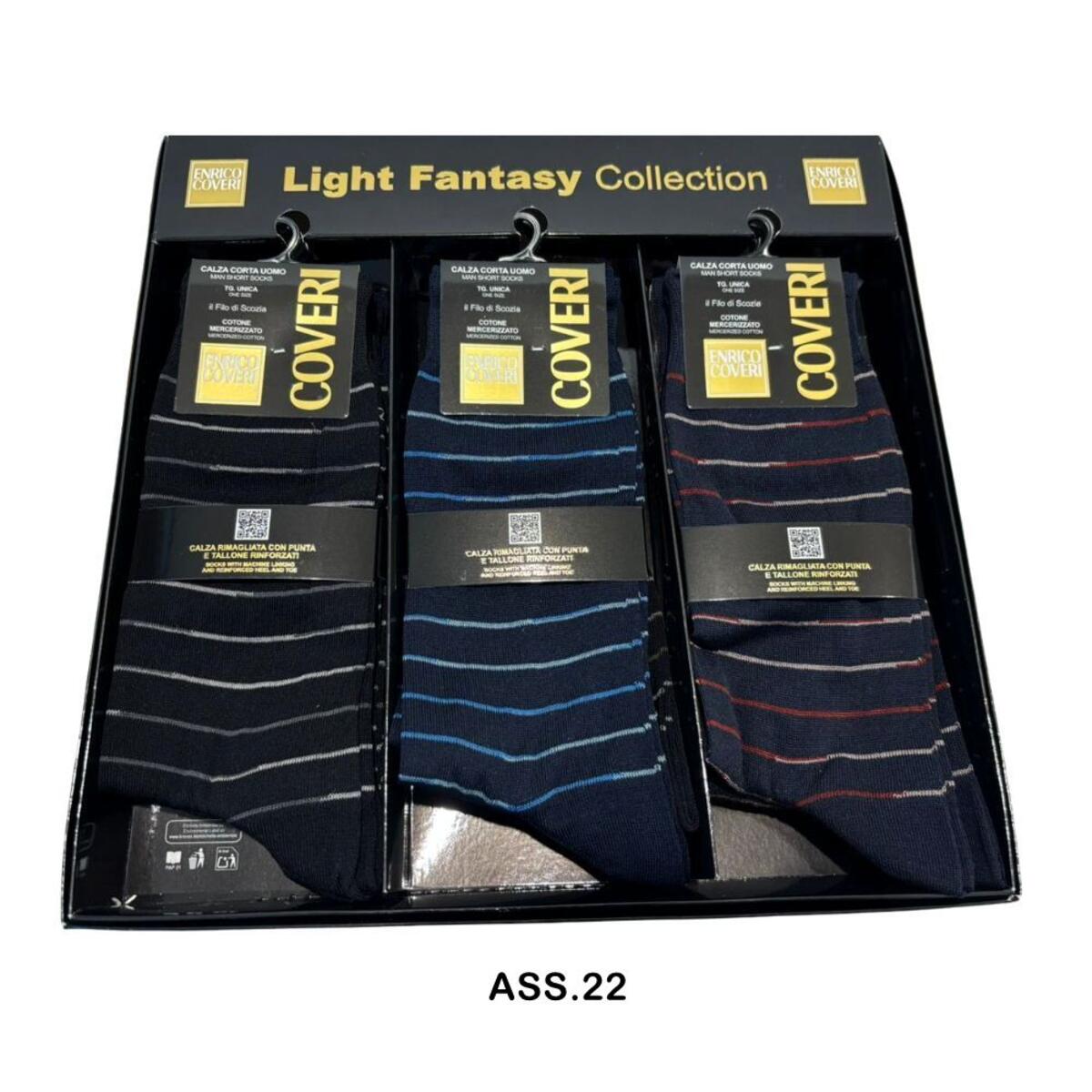 Calzino corto uomo in cotone elasticizzato con motivo a righe colorate e fantasia.